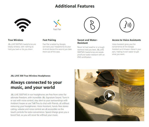 Life is too short to live without the JBL Live 300 IPX5 Bluetooth Wireless Headset. Be happy. Be Content. Be Satisfied.