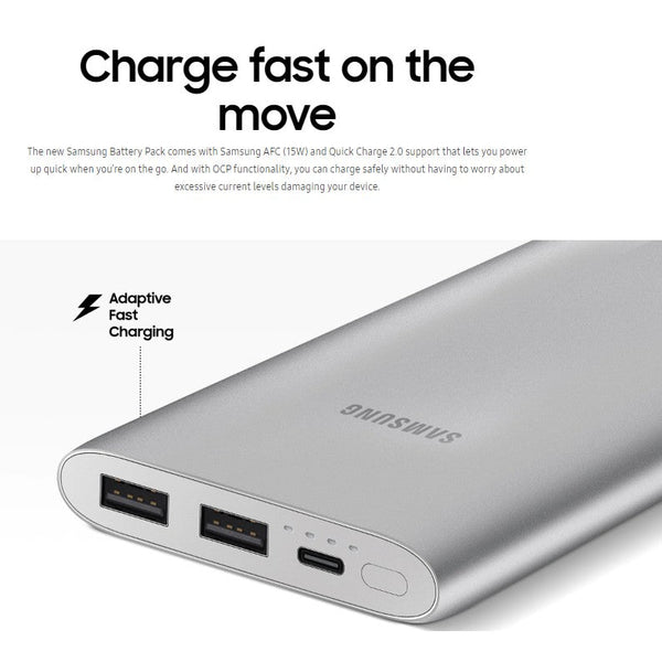The Samsung 10000mAh Fast Charging Dual Output Power Bank was built with people like you in mind. Something to keep you happy. Every. Single. Day.