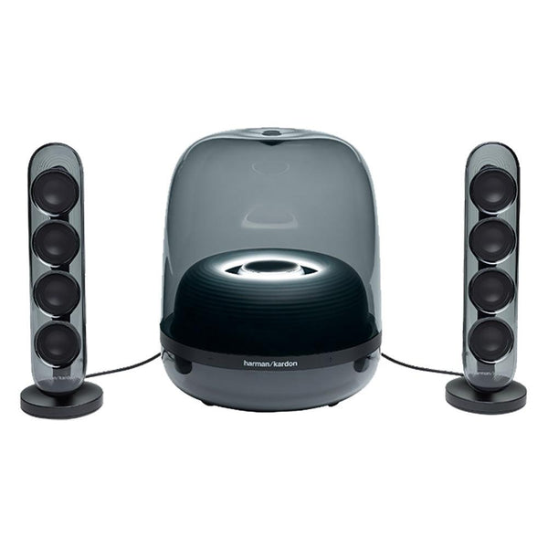 Harman Kardon SoundSticks 4 make a statement in any contemporary home. The groundbreaking transparent dome design and sleek silhouette blend in seamlessly with your decor. The two satellite speakers and subwoofer cover look stunning with an inner rippled surface design reflecting the beauty of music.