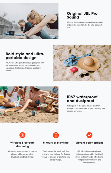 The JBL GO 3 Mini WaterProof Powerful Bluetooth Speaker is the product you didn't think you need, but once you have it, something you won't want to live without.