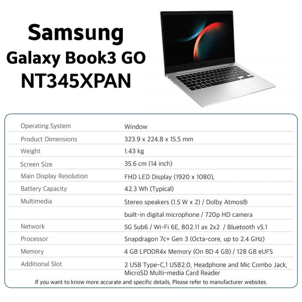 On the hardware front, the Samsung Galaxy Book 3 Go 5G is powered by a Snapdragon 7c+ Gen 3 chipset based on 6nm process.